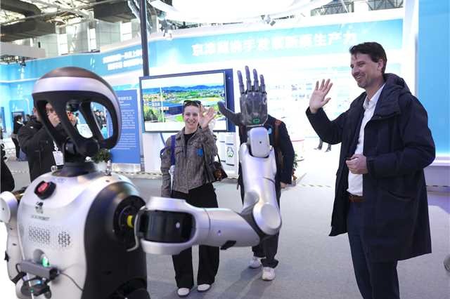 Participants interact with a 6G-enabled remote-controlled robot at the 2026 Zhongguancun Forum (ZGC Forum), which opened in Beijing on March 26. [Photo by Zou Hong/chinadaily.com.cn]