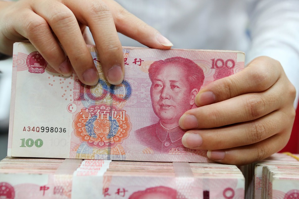 A clerk counts cash at a bank in Nantong, Jiangsu province. [Photo/Sipa]