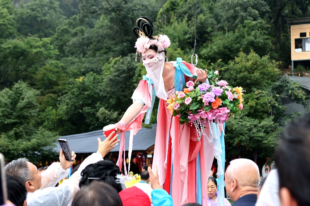 An actress presents “the first cup of milk tea in autumn” to tourists during a performance in Luoyang, Henan province, on Aug 7. WANG ZHONGJU/CHINA NEWS SERVICE