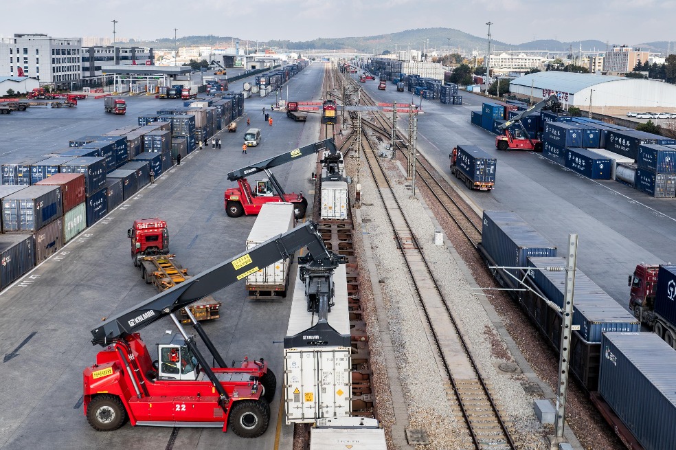 An international cargo train of China-Laos Railway is pictured at Wangjiaying West Station in Kunming, Southwest China’s Yunnan province, on Jan 2, 2025. [Photo/Xinhua]