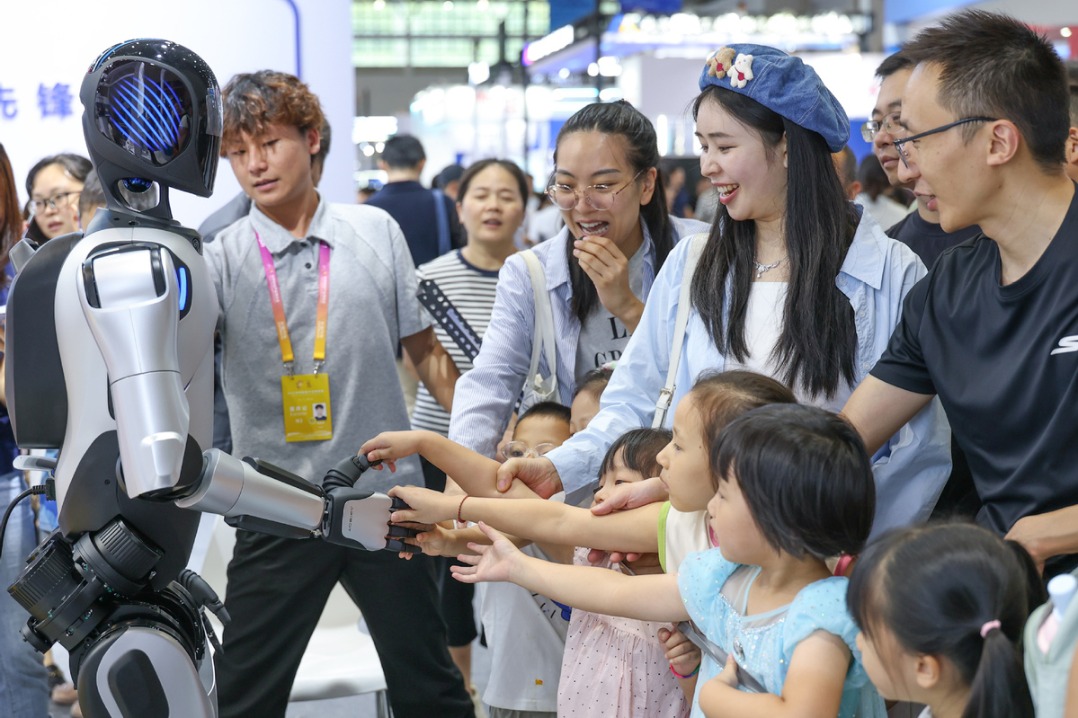 Visitors interact with a home service robot during the World Smart Industry Expo 2025 in Southwest China’s Chongqing municipality, Sept 6, 2025. [Photo/Xinhua]