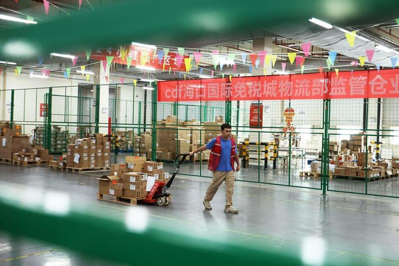 A staff member works at China Duty Free Group Hainan International Logistics Center in Haikou, South China’s Hainan province, May 26, 2025. [Photo/Xinhua]
