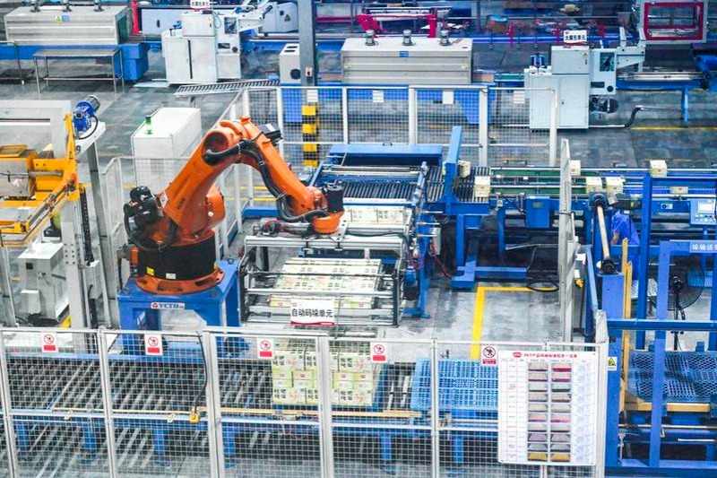 A robotic arm is seen at the smart workshop of Panpan Foods in Jinjiang, Southeast China’s Fujian province, Aug 19, 2025. [Photo/Xinhua]