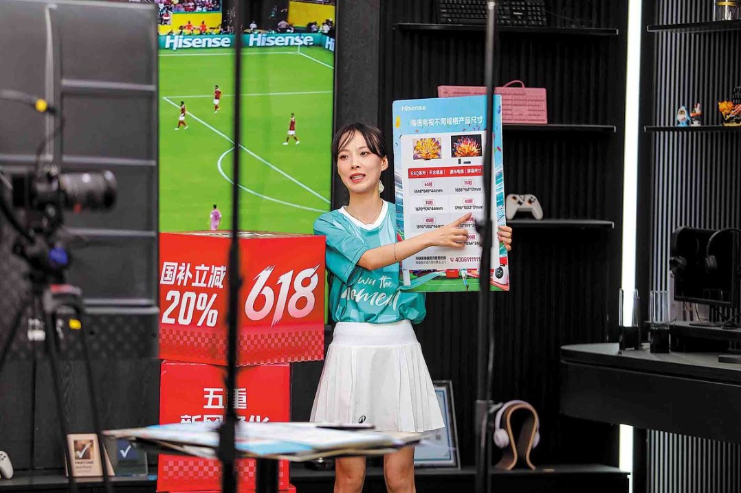 A livestreaming host promotes sales of home appliances in Qingdao, Shandong province. ZHANG YING/FOR CHINA DAILY