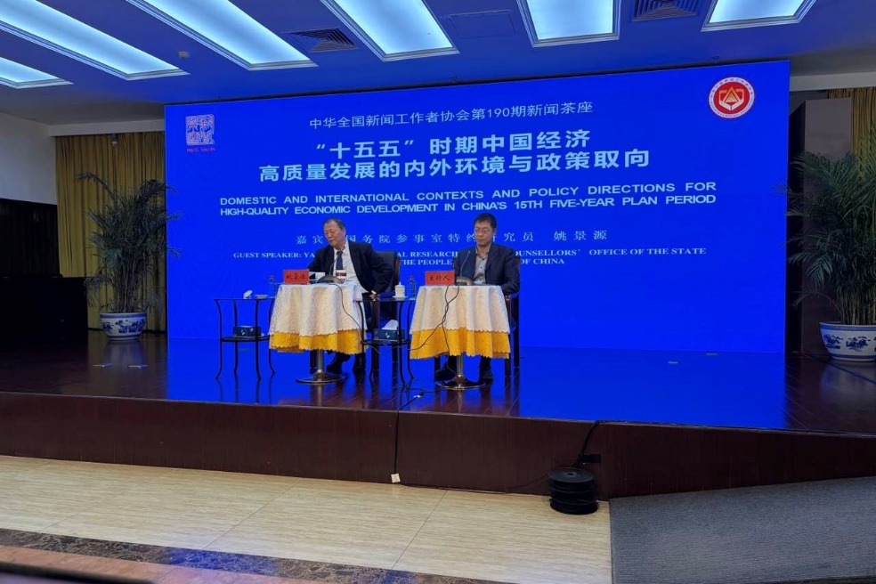 Yao Jingyuan (left), special researcher at the Counsellors’ Office of the State Council, speaks at the Domestic and International Contexts and Policy Directions for High-quality Economic Development in China’s 15th Five-year Plan period (2026-30), in Beijing on Friday. [Photo by Yan Xingzhou/chinadaily.com.cn]