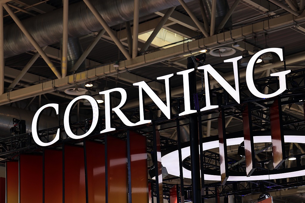 Corning’s logo is seen during an expo in Beijing on Nov 28, 2024. [Photo/VCG]