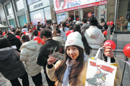 A customer shops at Holiland and Sexy Tea, a popular tea brand also known as Modern China Tea Shop, in Yichang, Hubei province on Dec 24. LI YALONG/FOR CHINA DAILY