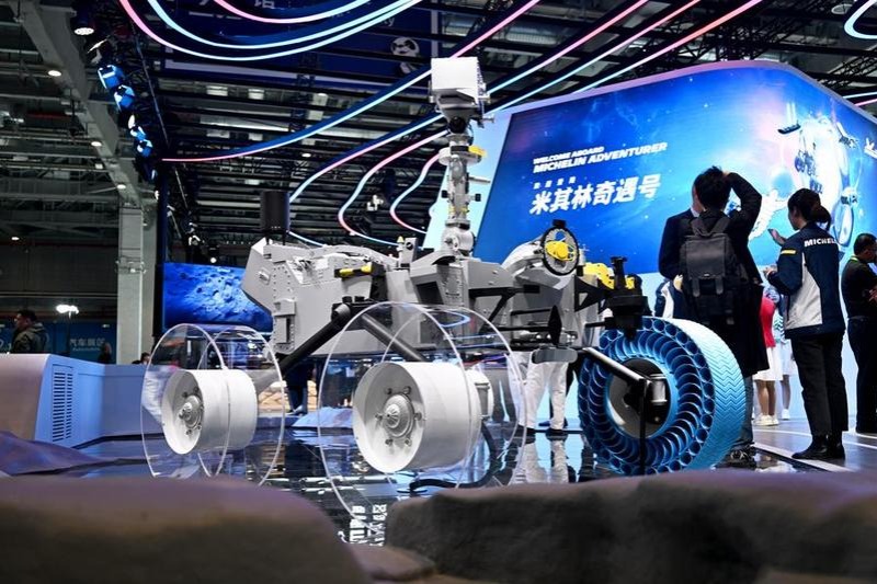 This photo taken on Nov 6, 2024 shows a lunar rover tire of Michelin during the seventh China International Import Expo (CIIE) in East China’s Shanghai. [Photo/Xinhua]