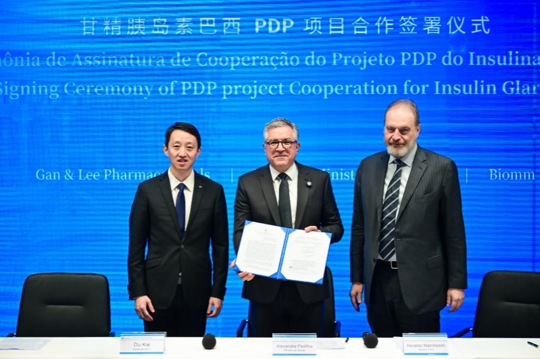 The agreement, signed on Monday at Gan & Lee’s headquarters in Beijing, as Alexandre Padilha, Brazil’s Minister of Health, led a delegation accompanied by Heraldo Marchezini, CEO of Brazilian pharmaceutical company Biomm, on a visit to Gan & Lee. During the visit, they held strategic talks with Du Kai, CEO of Gan & Lee, and formally signed a cooperation agreement for the PDP project, a key initiative under Brazil’s National Public Health System.