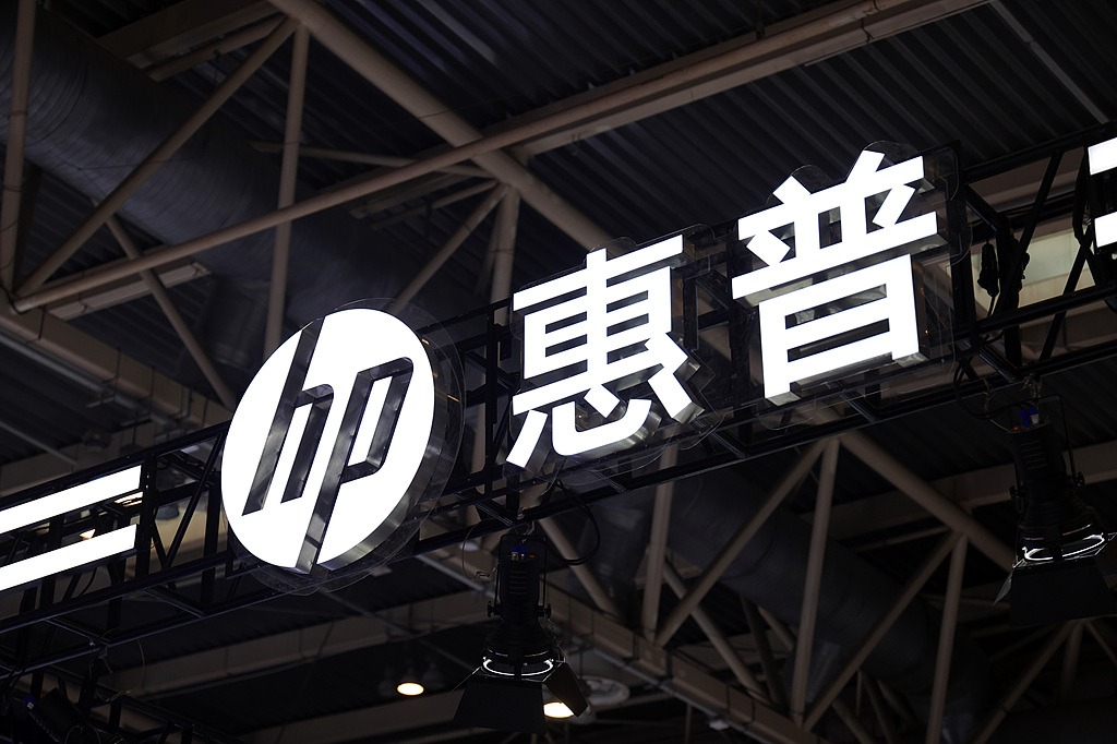 The logo of US tech company HP Inc is displayed at the China International Supply Chain Expo in Beijing, on Nov 26, 2024. [Photo/VCG]