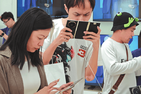 Huawei’s latest tri-fold smartphone attracts buyers at one of its stores in Shanghai. WANG GANG/FOR CHINA DAILY