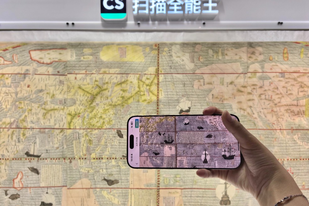 On-site demonstrations were conducted using the Great Universal Geographic Map from the Nanjing Museum in Jiangsu province. The 1608 version of this map, which is 3.85 meters long and 1.71 meters wide, is the earliest, most complete, and content-rich Chinese world map extant in China.