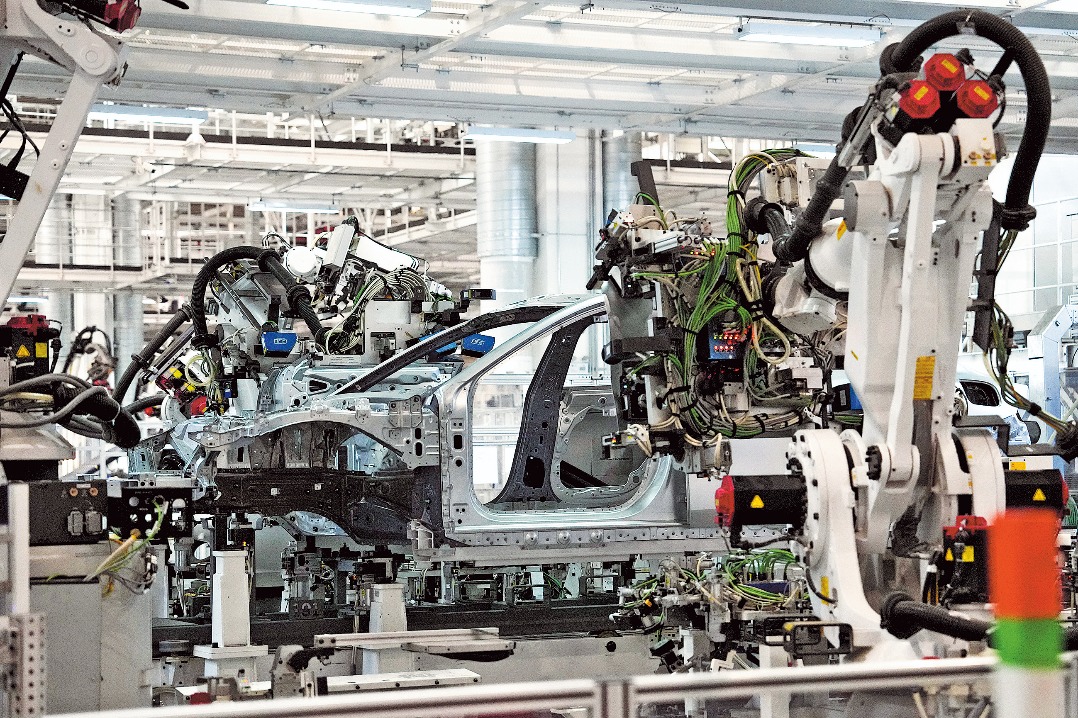 A vehicle is assembled on an automated production line in Beijing. ZHENG HUANSONG/XINHUA