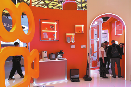 Visitors gather at Kuaishou’s booth during a home appliance expo in Shanghai in March. CHINA DAILY