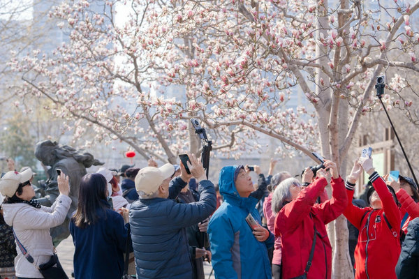 The 23rd Yulan Magnolia Flower Appreciation Season officially opened at the Beijing International Sculpture Park on Friday, where more than 5,000 magnolia trees representing 19 varieties are coming into bloom across the grounds. Themed “Spring Quest: Magnolia Exploration Tour”, the event will run until March 31.
