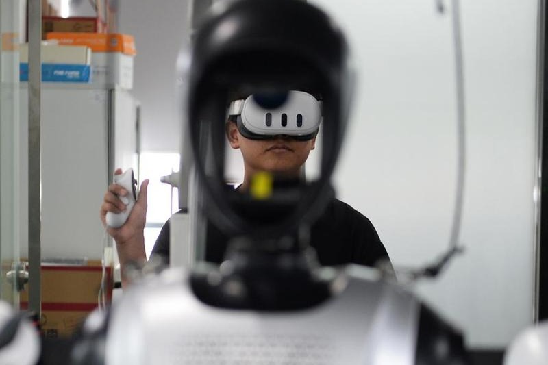 A staff member synchronizes robot actions at Leju Robotics in Shenzhen, South China’s Guangdong province, March 27, 2025. [Photo/Xinhua]