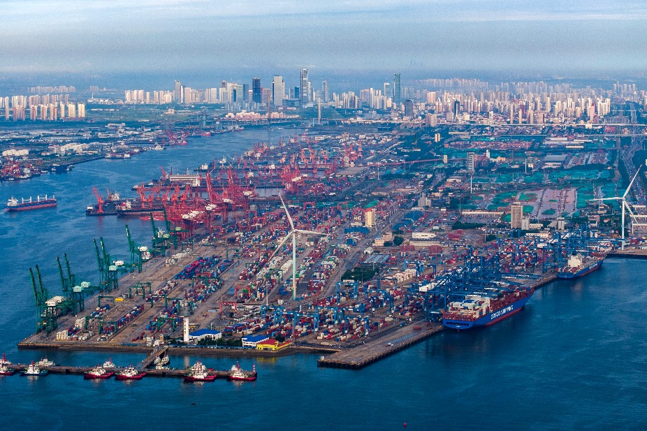 A drone photo taken on Aug 25, 2025 shows a view of a container terminal of Tianjin Port in North China’s Tianjin. [Photo/Xinhua]