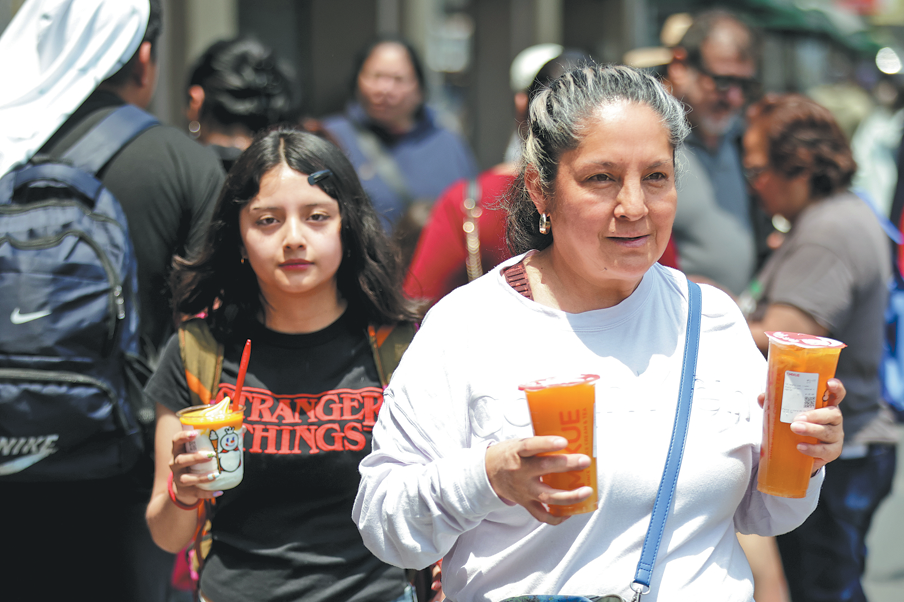 Consumers hold Mixue beverages at Zocalo, the main central square of Mexico City, on April 1. XINHUA