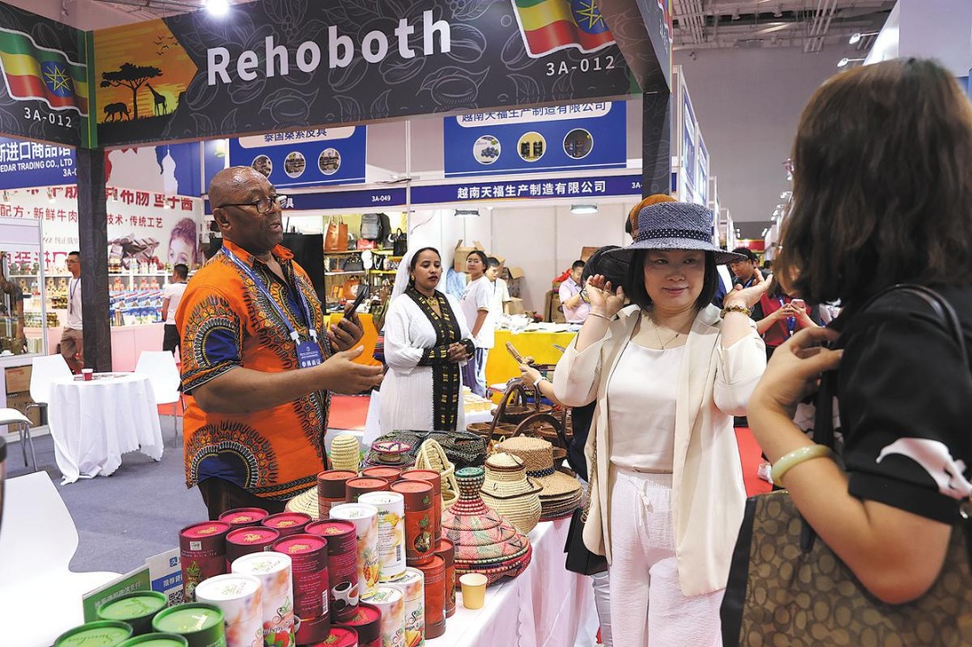 Visitors check out imported products at a trade expo in Langfang, Hebei province, in June. WANG MIN/XINHUA