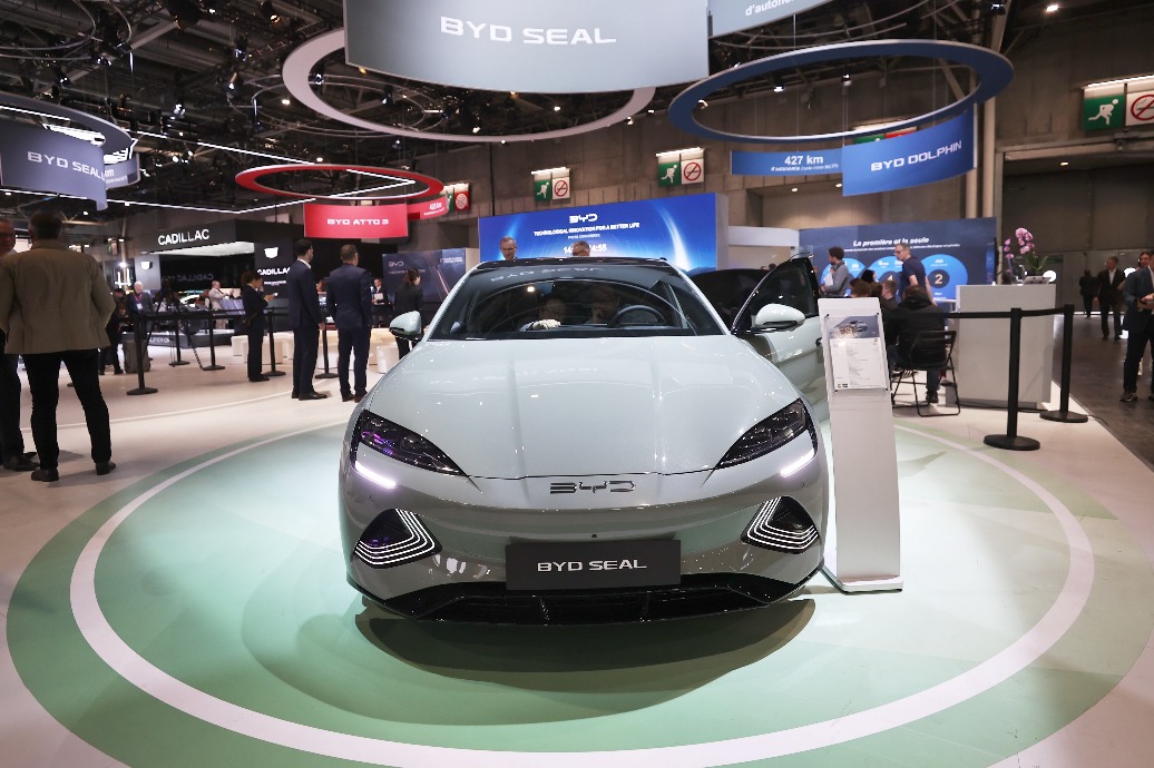 A BYD vehicle on display during an auto expo in Paris, France last year. GAO JING/XINHUA