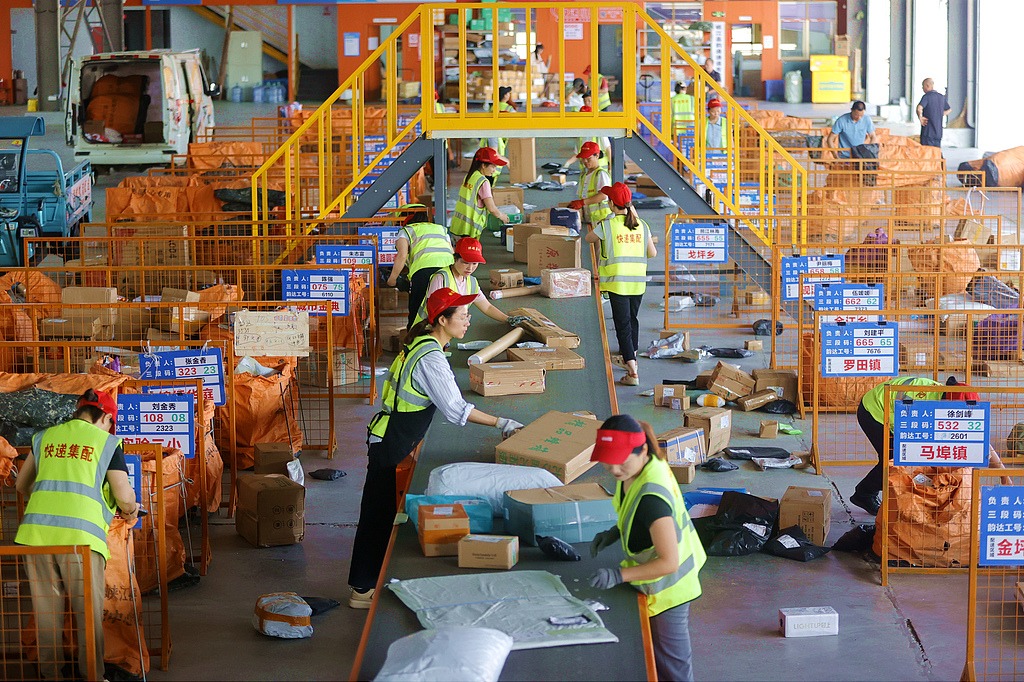Packages are processed at a distribution center in Ji’an, Jiangxi province, on July 4, 2025. [Photo/VCG]