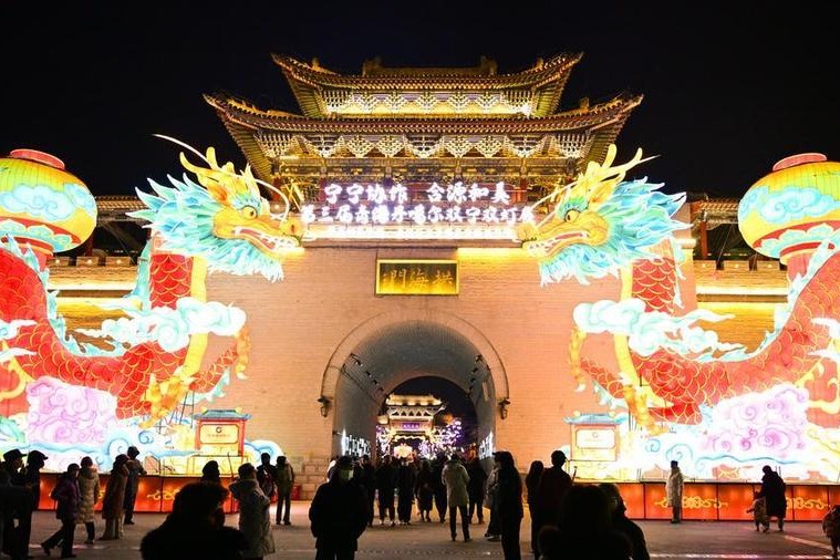 Tourists enjoy the lanterns at an ancient city scenic area in Huangyuan county of Xining, Northwest China’s Qinghai province on Jan 2, 2026. [Photo/Xinhua]