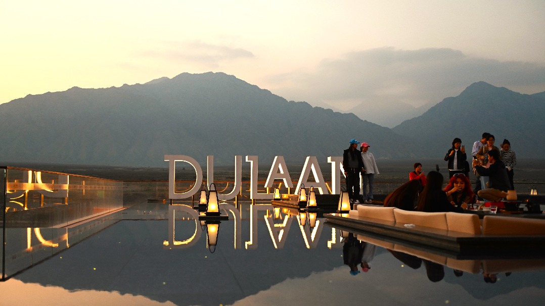 Tourists enjoy a view of the Helan Mountains in Yinchuan, Ningxia Hui autonomous region, in October. MAO ZHU/XINHUA