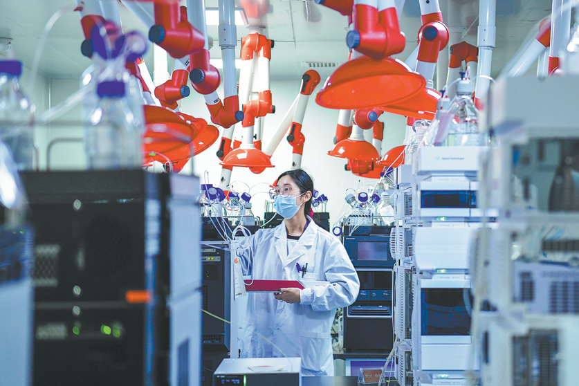 A pharma researcher works at a lab in Haikou, Hainan province, on Feb 5. SU BIKUN/FOR CHINA DAILY