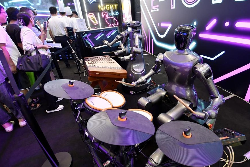 A robot band is displayed at the 2025 World Robot Conference (WRC) in Beijing, capital of China, Aug 8, 2025. [Photo/Xinhua]