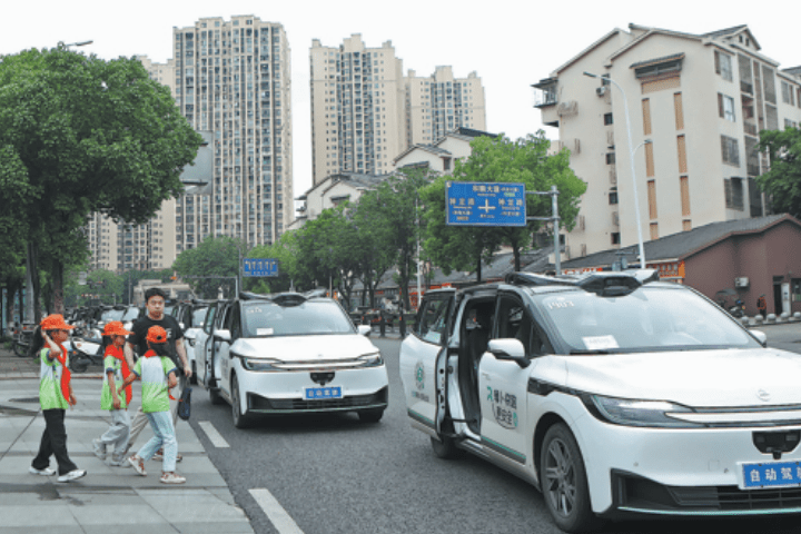 Schoolchildren take a tour in Baidu robotaxis in Chongqing on June 1. CHEN SHICHUAN/FOR CHINA DAILY