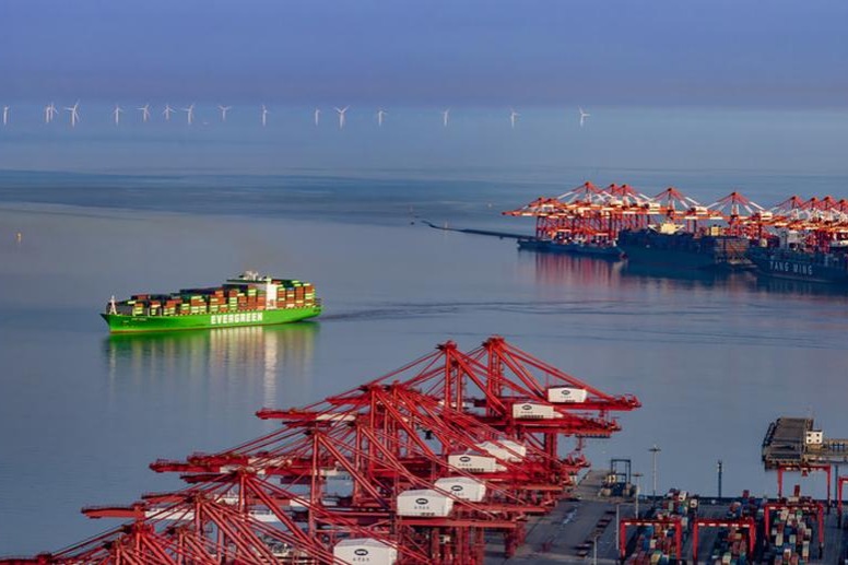 An aerial view of the Yangshan Port in Shanghai, on July 26, 2025. [Photo/Xinhua]