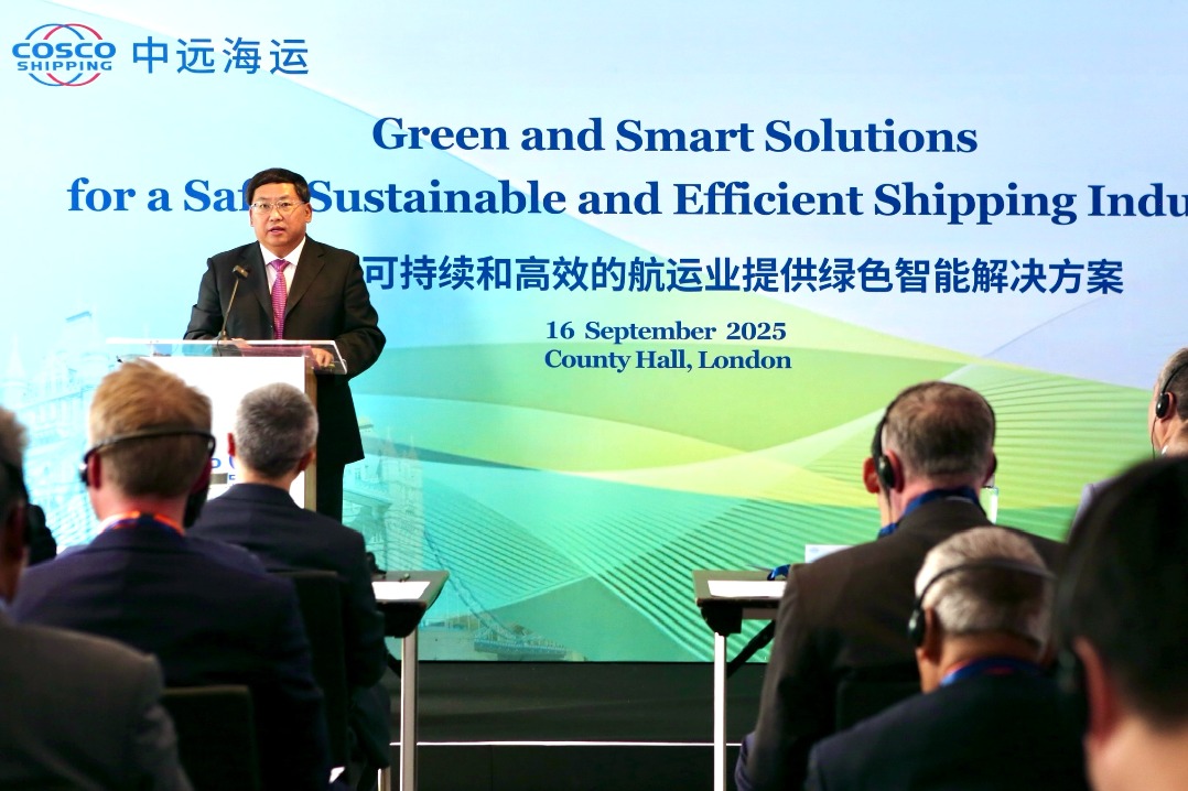 China’s COSCO Shipping Group and the China Classification Society co-hosted a forum discussing green and smart solutions for a safe, sustainable, and efficient shipping industry in London last week, attracting more than 150 attendees.