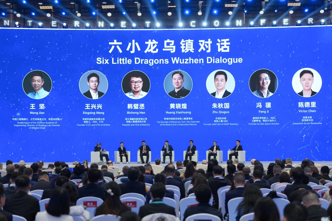 As a highlight of the 2025 World Internet Conference Wuzhen Summit, executives from the “Six Little Dragons” engage in dialogues, exchanging views on the latest developments in artificial intelligence and other cutting-edge technologies, and explore ideas focused on cross-sector cooperation in addressing global issues in Wuzhen, Zhejiang province on Nov 7, 2025. [Photo/Xinhua]