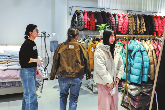 Customers shop for down jackets in Guigang, Guangxi Zhuang autonomous region, on Dec 18. CHINA DAILY