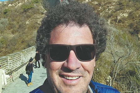 Matthew Jellick on the Great Wall in Beijing.[Photo/China Daily]