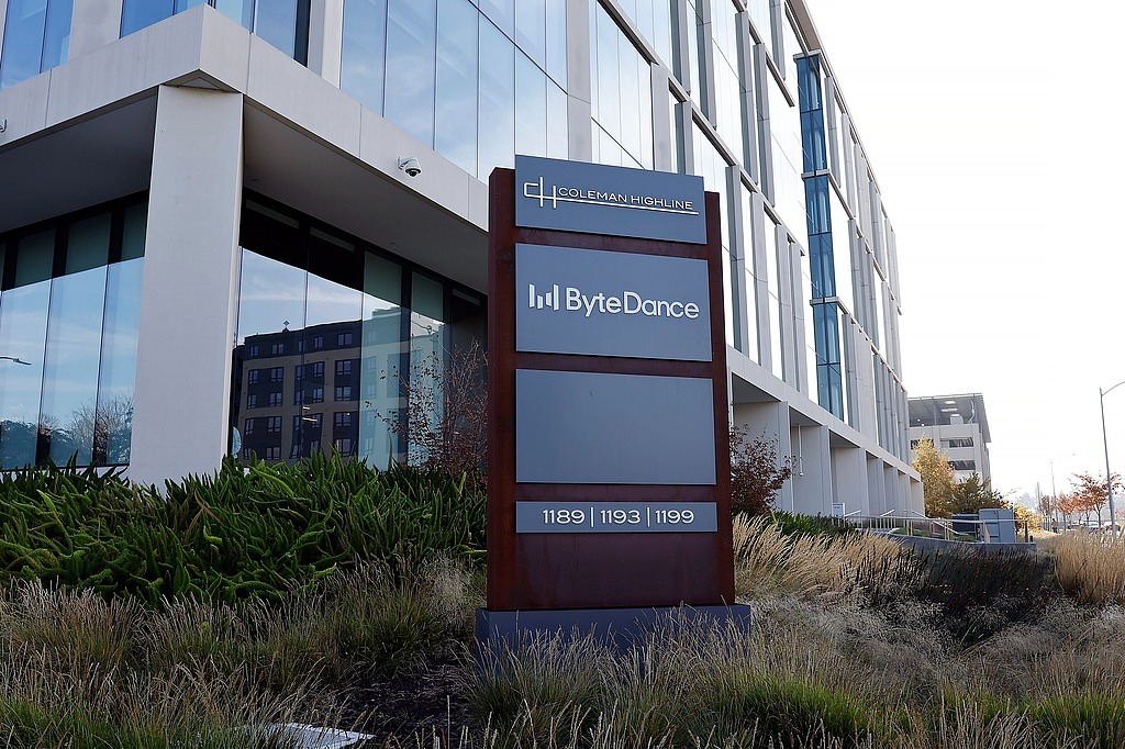 Signage is displayed outside the corporate headquarters of ByteDance, the parent company of TikTok, in San Jose, California, US, Dec 16, 2025. [Photo/VCG]