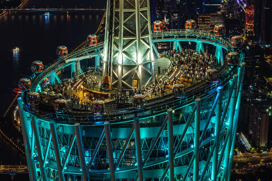 Tourists enjoy night views at Canton Tower in Guangzhou, Guangdong province, on May 4. MIAO QIANG/FOR CHINA DAILY