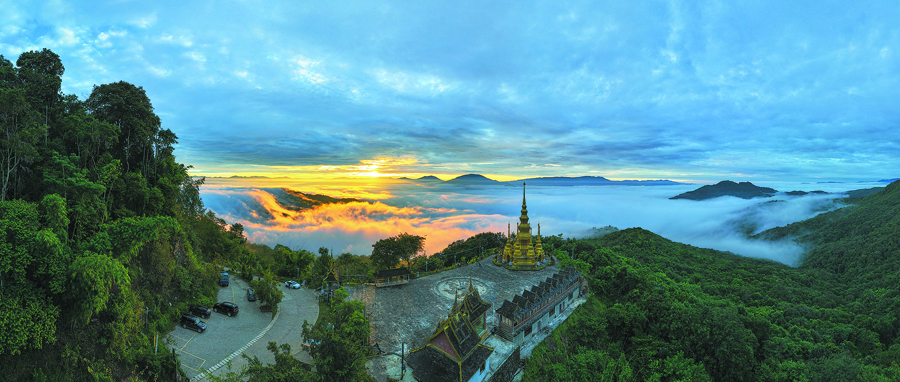 Sunrise casts a golden hue on the mist enveloping Jingmai Mountain in Yunnan province.  [Photo provided by Shao Hongyan for China Daily]