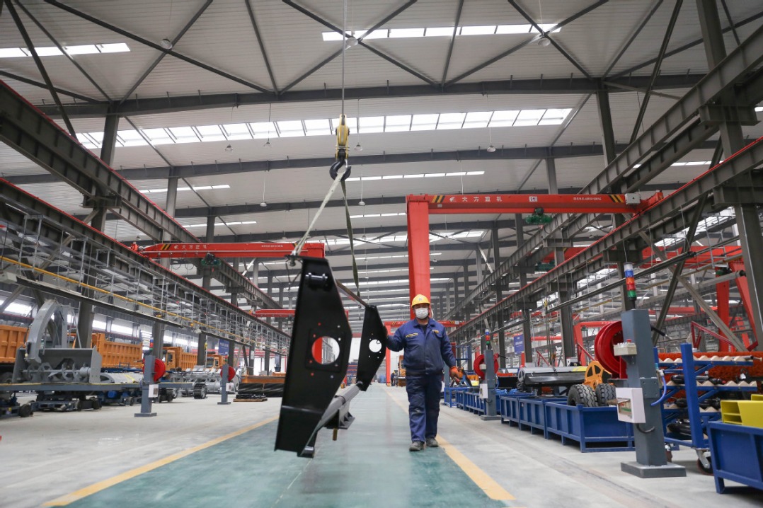 An XCMG employee works at a production facility in Fuxin, Liaoning province. [Photo/Xinhua]